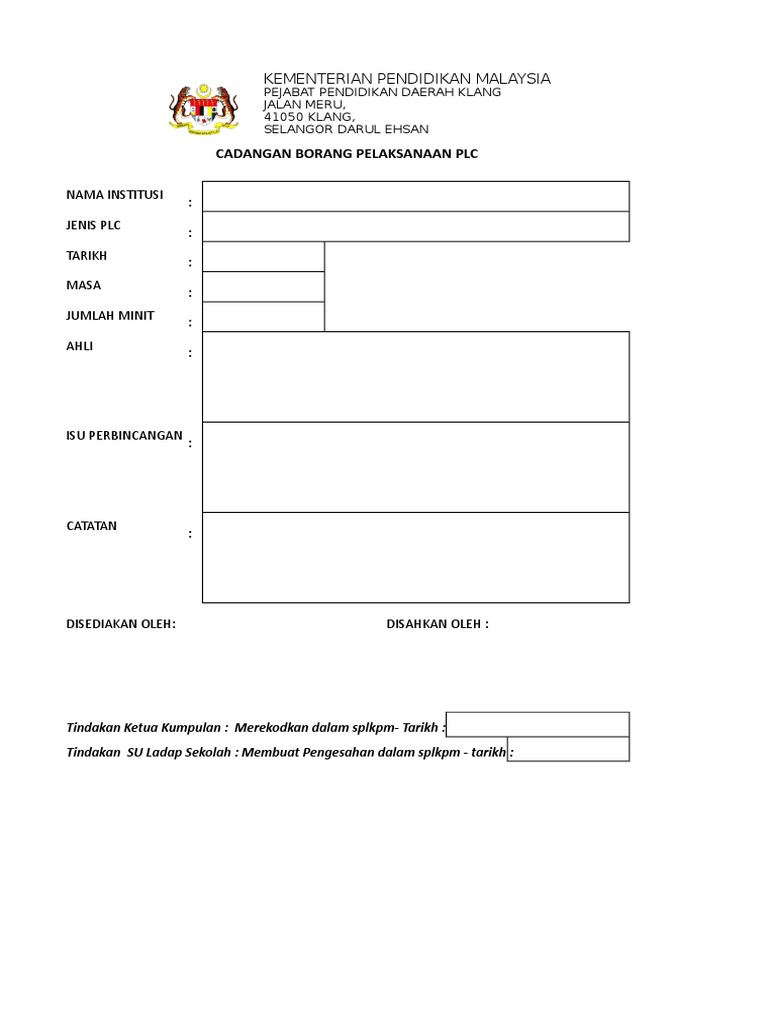 Borang Pelaporan Pelaksanaan Plc Pdf